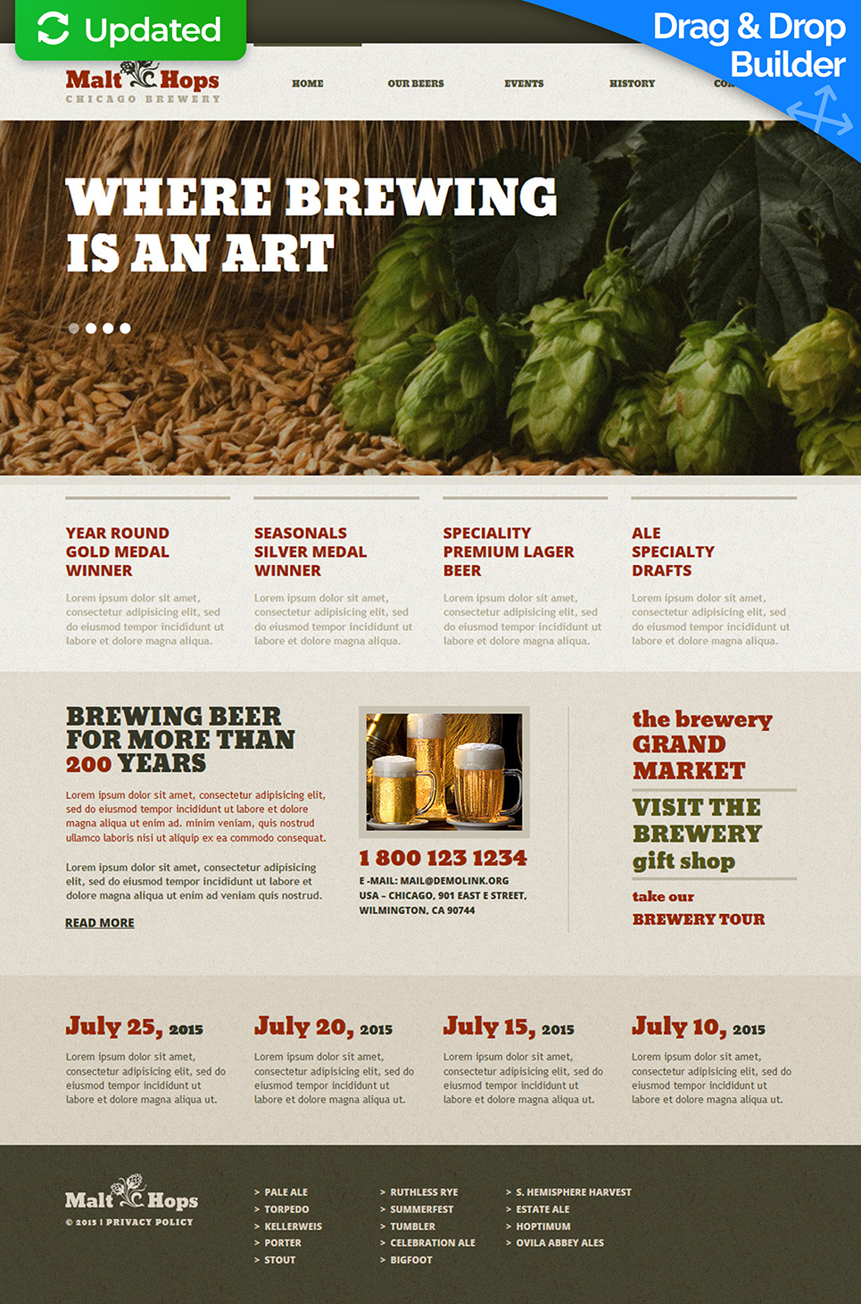 Malt Hops - превосходно подходит для сайтов в сфере Пивоварня. Moto CMS 3 адаптивный шаблон - Brewery Moto CMS 3 Template.