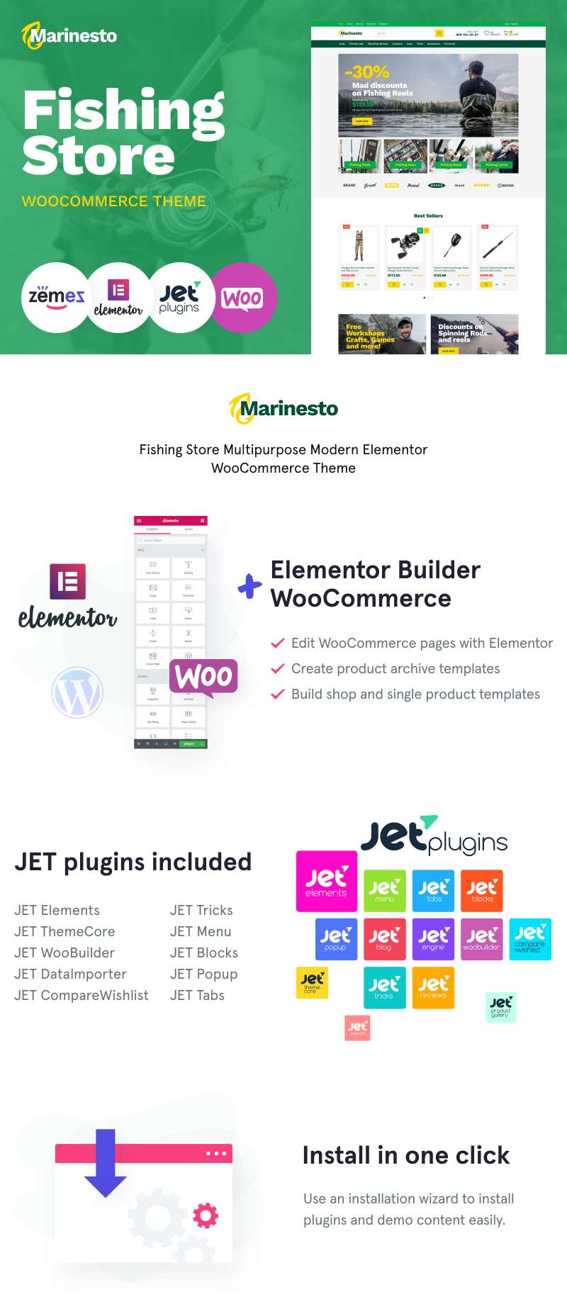 Marinesto - идеально подходит для сайтов в категории Рыбалка. WooCommerce шаблон магазина для сайта WordPress - Fishing ECommerce Classic Elementor WooCommerce Theme.