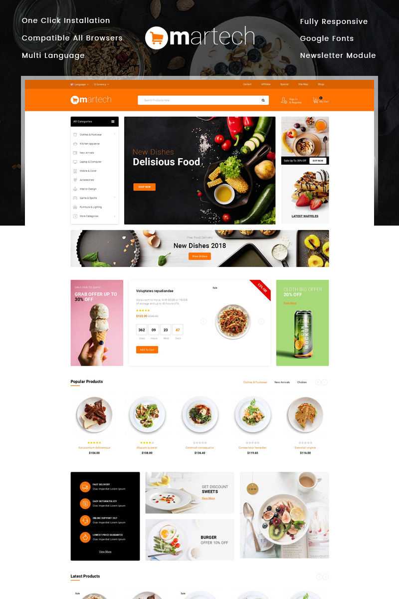 Martech food store opencart шаблон - Coffee Shop - OpenCart шаблон интернет-магазина
