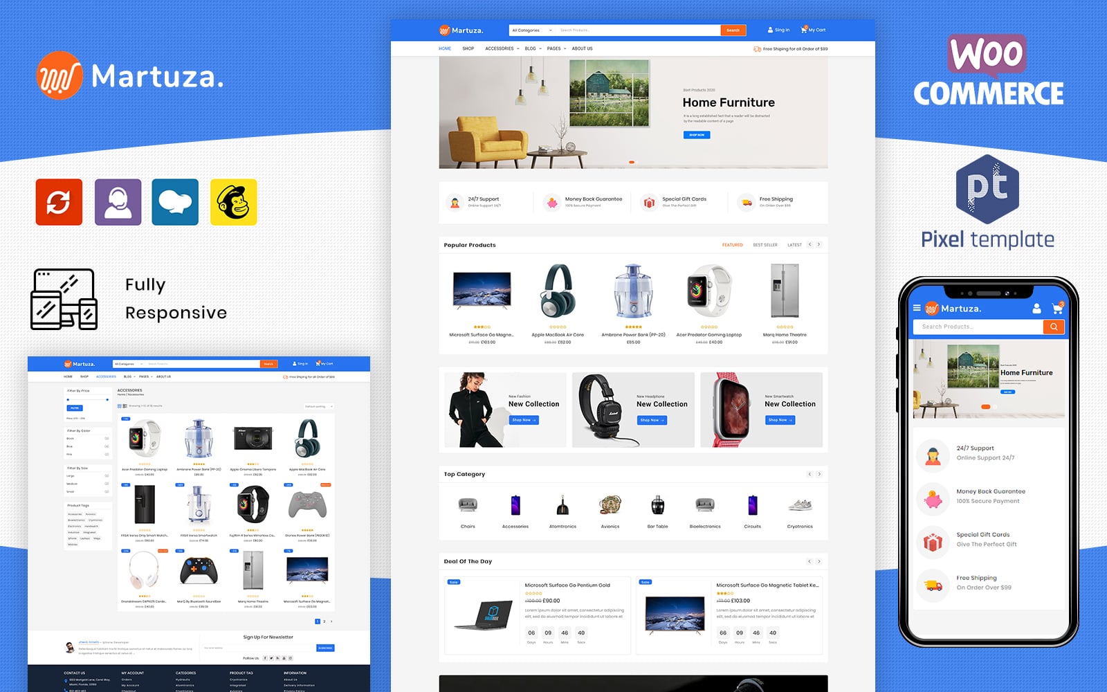 WooCommerce шаблон магазина для сайта WordPress - Martuza - Multipurpose Electronic Store WooCommerce Theme, отлично подходит для сайтов в сфере Компьютерный магазин.