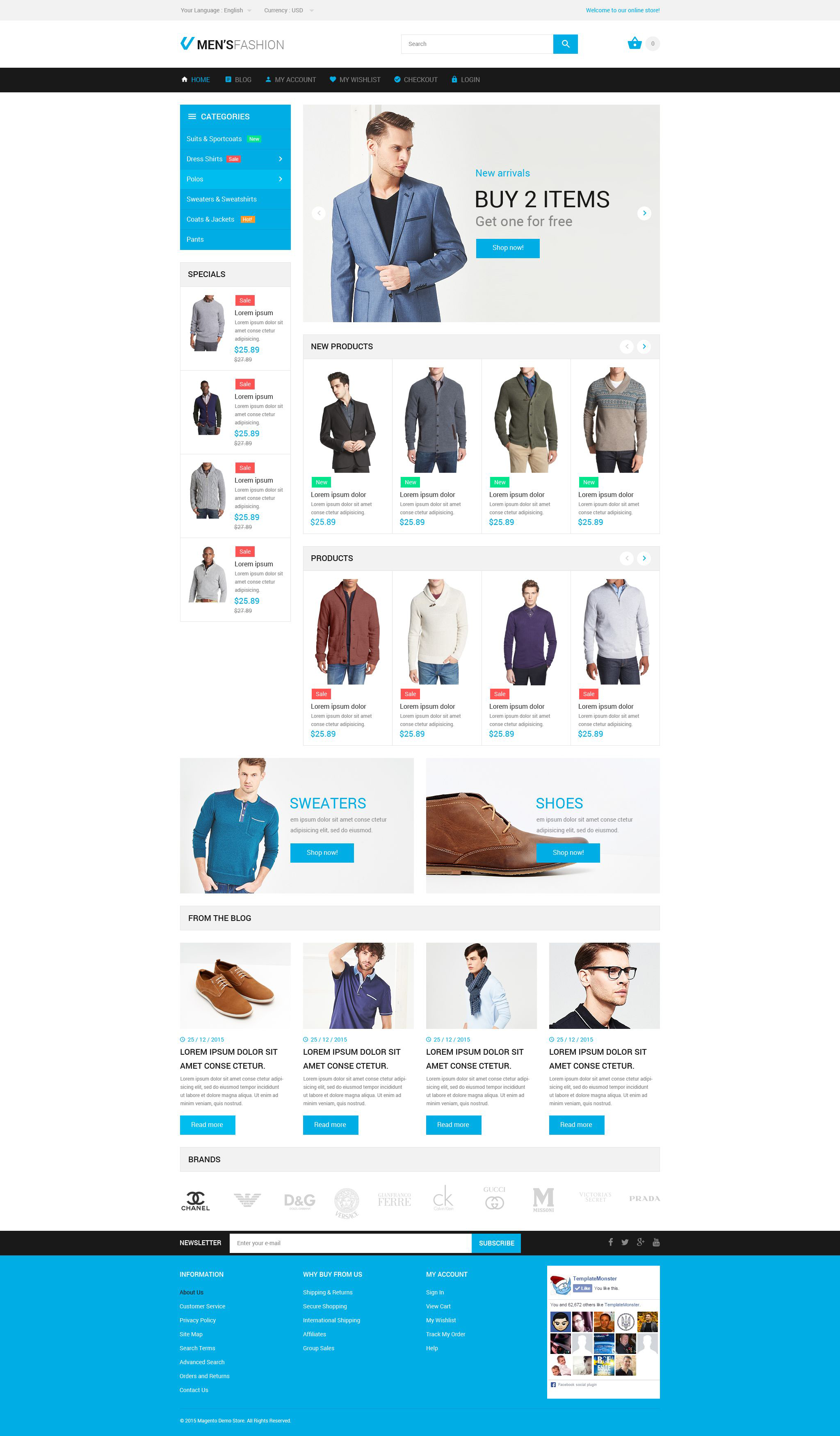 Magento отличный шаблон - Fashion Store - Masculine Elegance Magento Theme, отлично подойдет для сайтов на тему Модный магазин.
