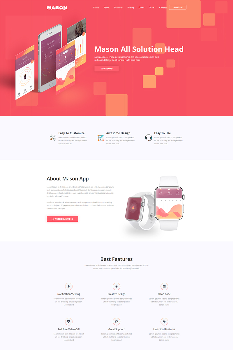 Скриншот - Шаблон веб-сайта приложения - Mason - HTML5 шаблон 2021 года