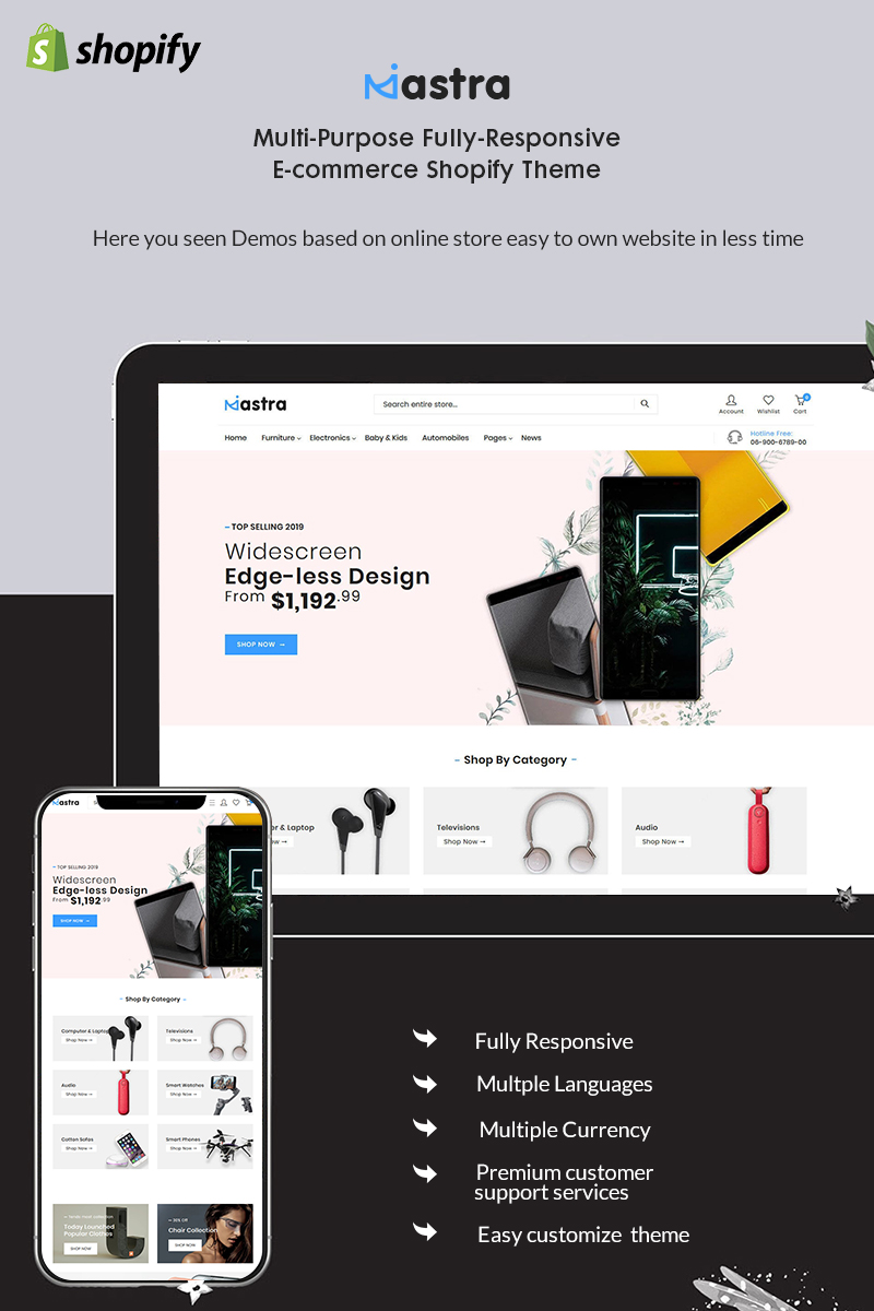 Mastra - идеально подойдет для сайтов в категории Магазин мобильной связи. Shopify шаблон интернет-магазина - The Responsive Multistore Shopify Theme.