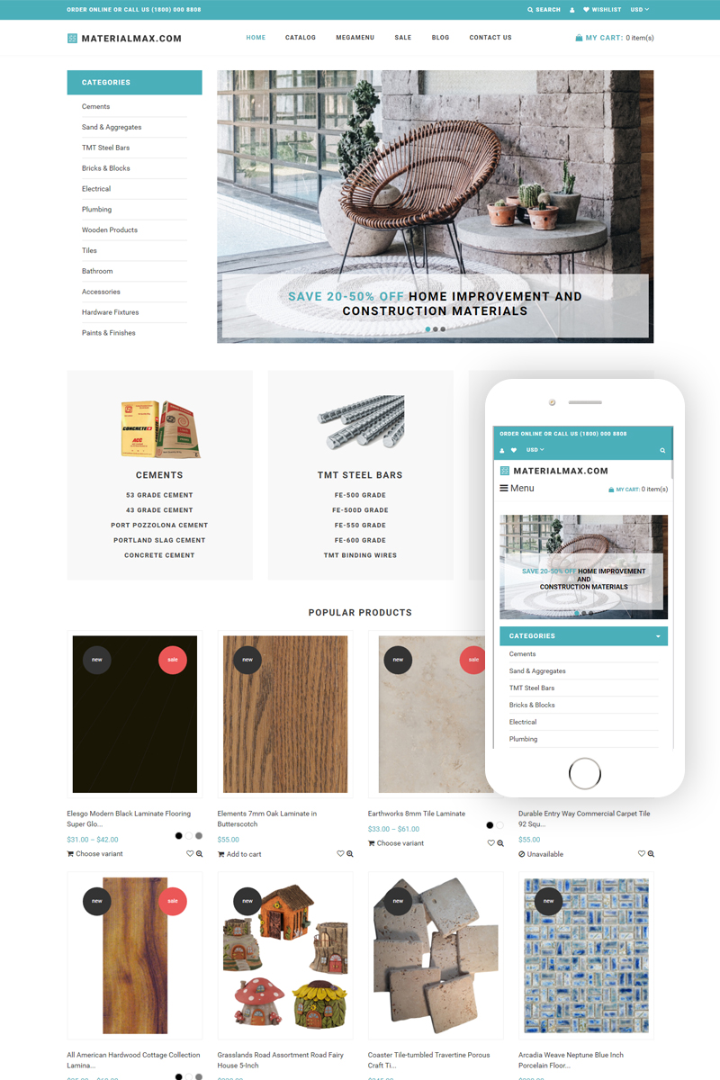 Shopify интернет-магазин - Materialmax - Building Materials Responcive Clear Shopify Theme, отлично подойдет для сайтов Строительные материалы.