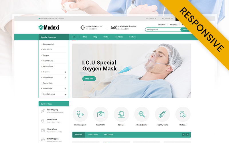 Медицинская аптека woocommerce тема - Medexi - WooCommerce шаблон магазина для сайта WordPress