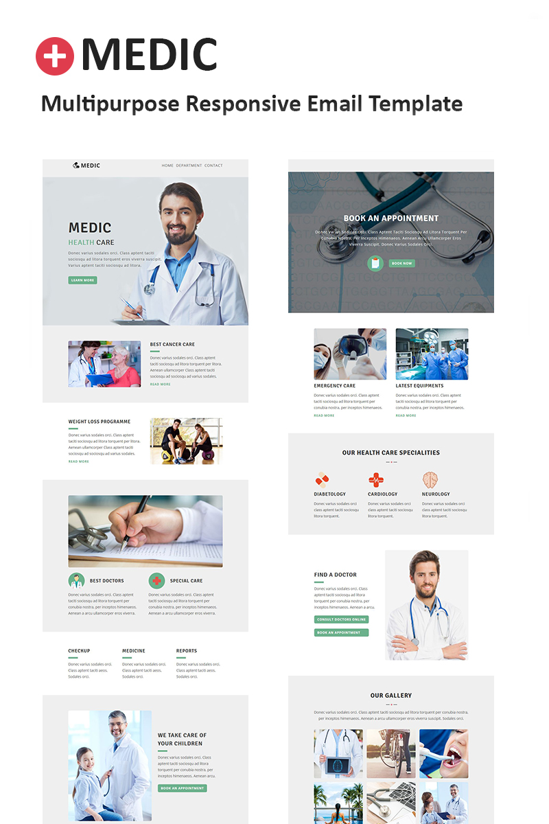 Medic - хорошо подойдет для сайтов на тему Медицина. Email шаблон электронного письма - Multipurpose Responsive Newsletter Template.