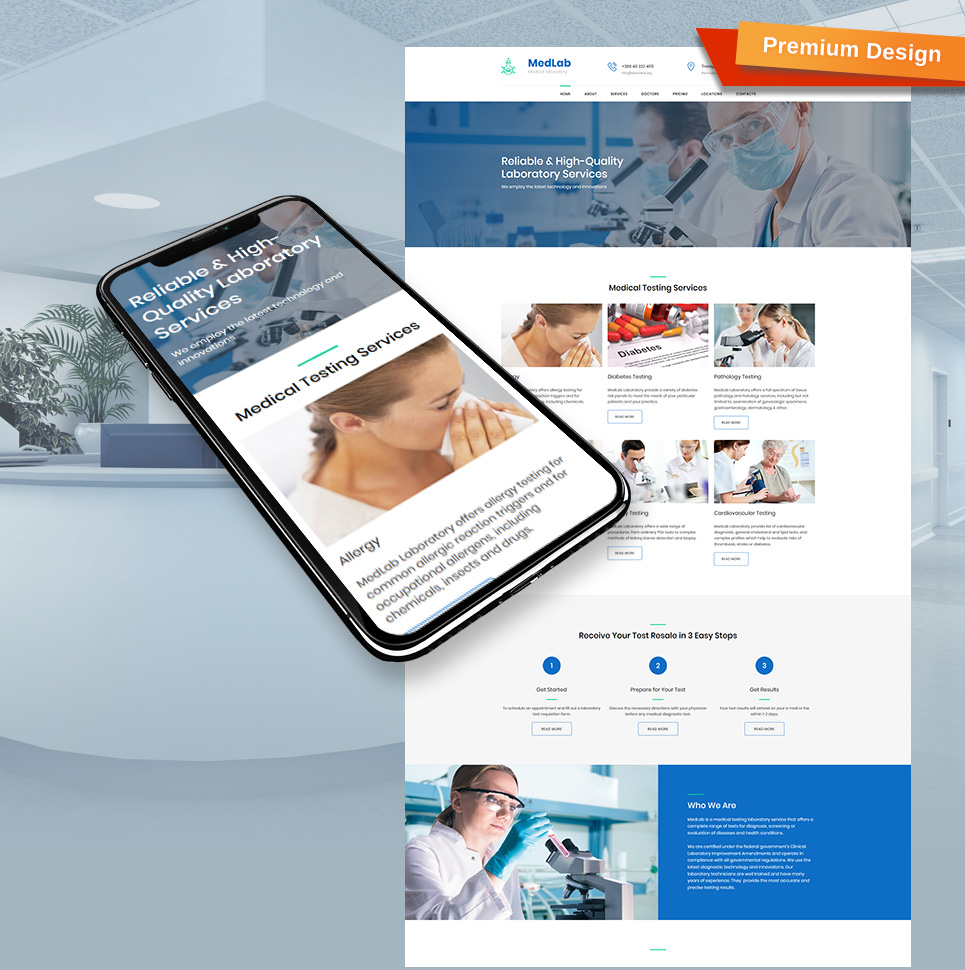 Moto CMS 3 популярный шаблон - Science Lab - Medical Laboratory Premium Moto CMS 3 Template, идеально подойдет для сайтов в области Научная лаборатория.