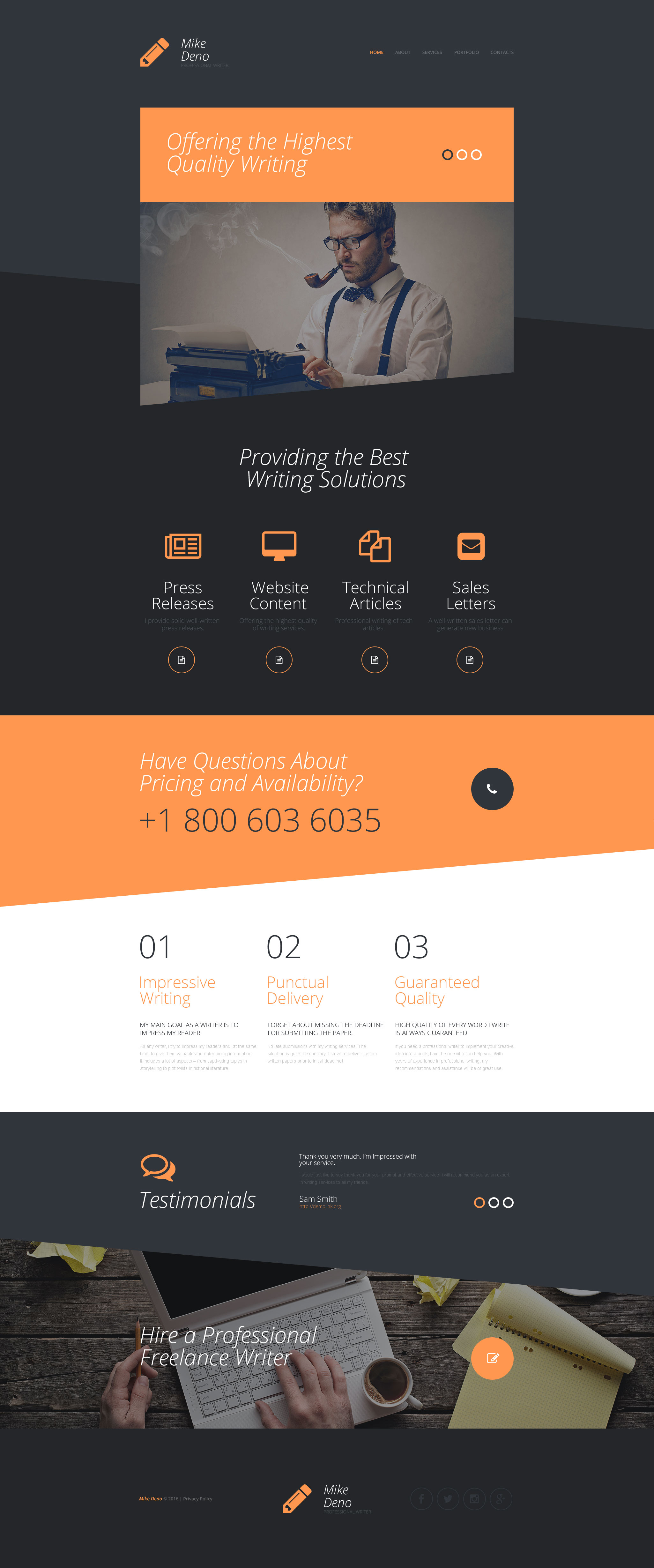 Writer/Author - превосходно подходит для сайтов на тему Писатель/автор. HTML5 универсальный шаблон - Mike Deno Website Template.