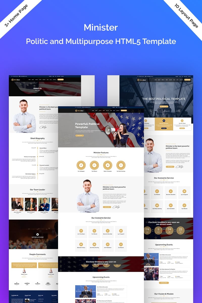 Лендинг шаблон посадочной страницы - Political Party - Political & Multipurpose Responsive Landing Page Template, превосходно подойдет для сайтов в сфере Политические партии.