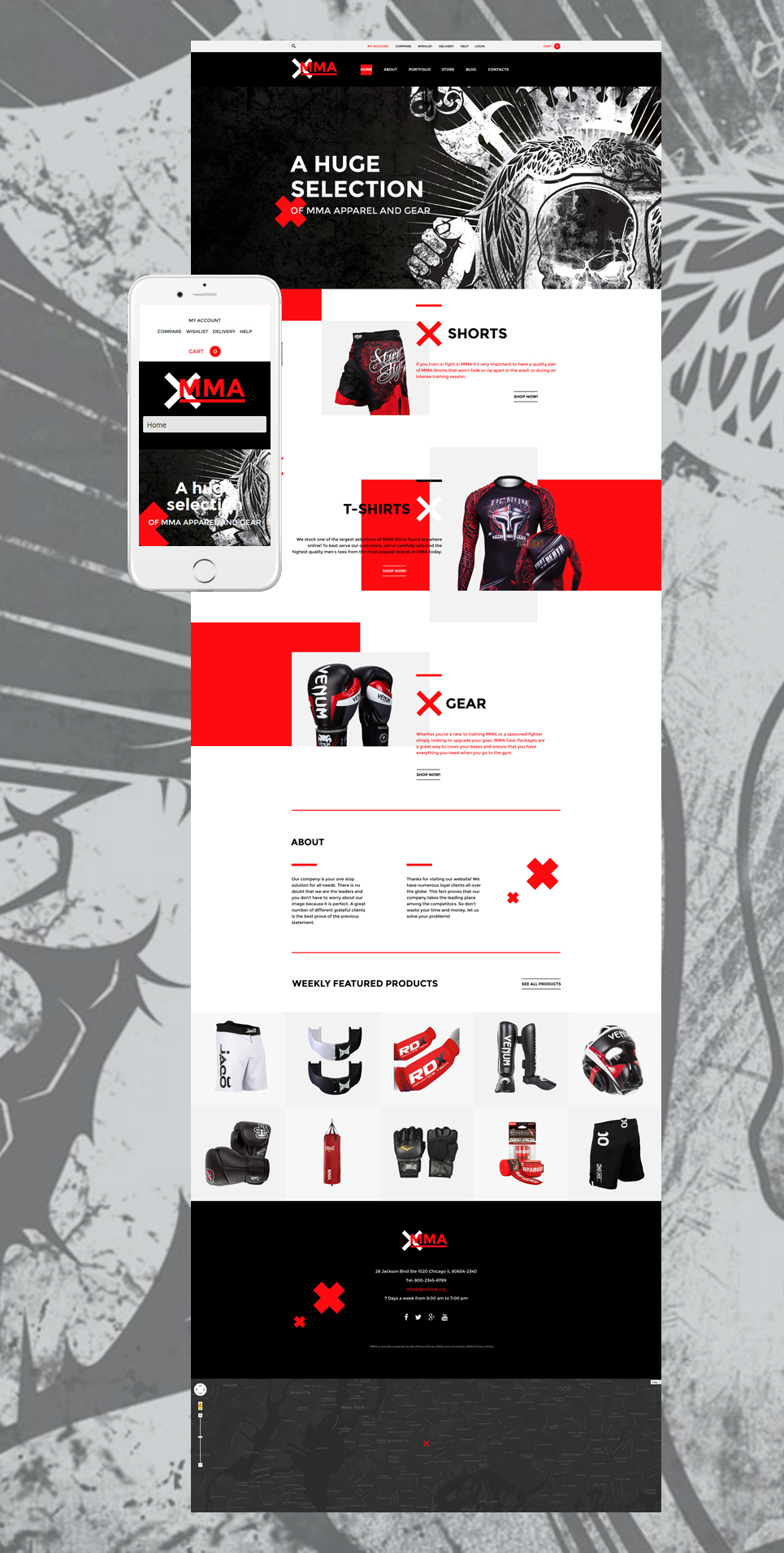 Martial Arts - хорошо подойдет для сайтов в сфере Боевые искусства. WooCommerce шаблон для интернет-магазина на Wordpress - MMA WooCommerce Theme.