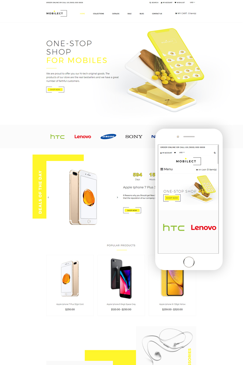 Mobilect - превосходно подойдет для сайтов в области Магазин мобильной связи. Shopify шаблон интернет-магазина - Mobile Store Multipage Clean Shopify Theme.