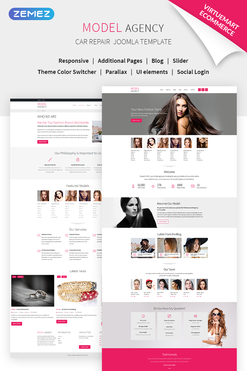 Model Agency - отлично подойдет для сайтов в сфере Модельное агентство. Joomla шаблон - Model agency + VM Joomla Template.