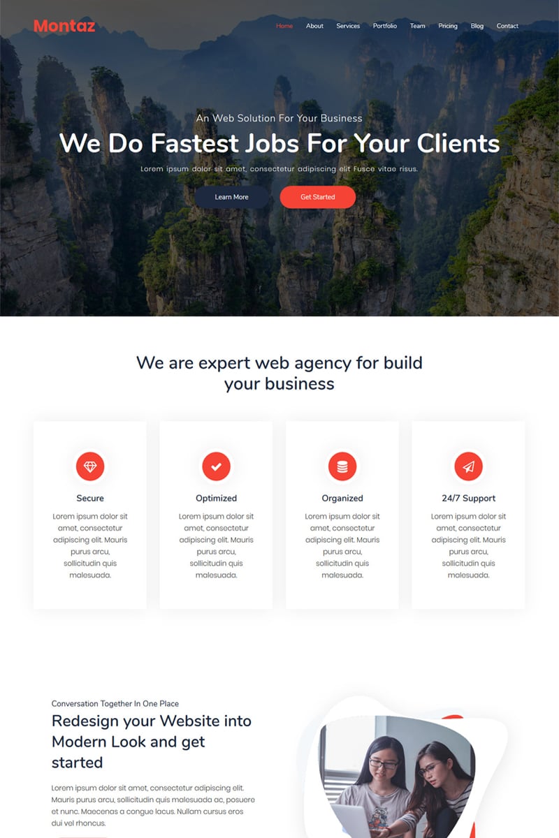Лендинг шаблон посадочной страницы - Montaz - One Page Parallax Landing Page Template, превосходно подходит для сайтов в сфере Бизнес и услуги.