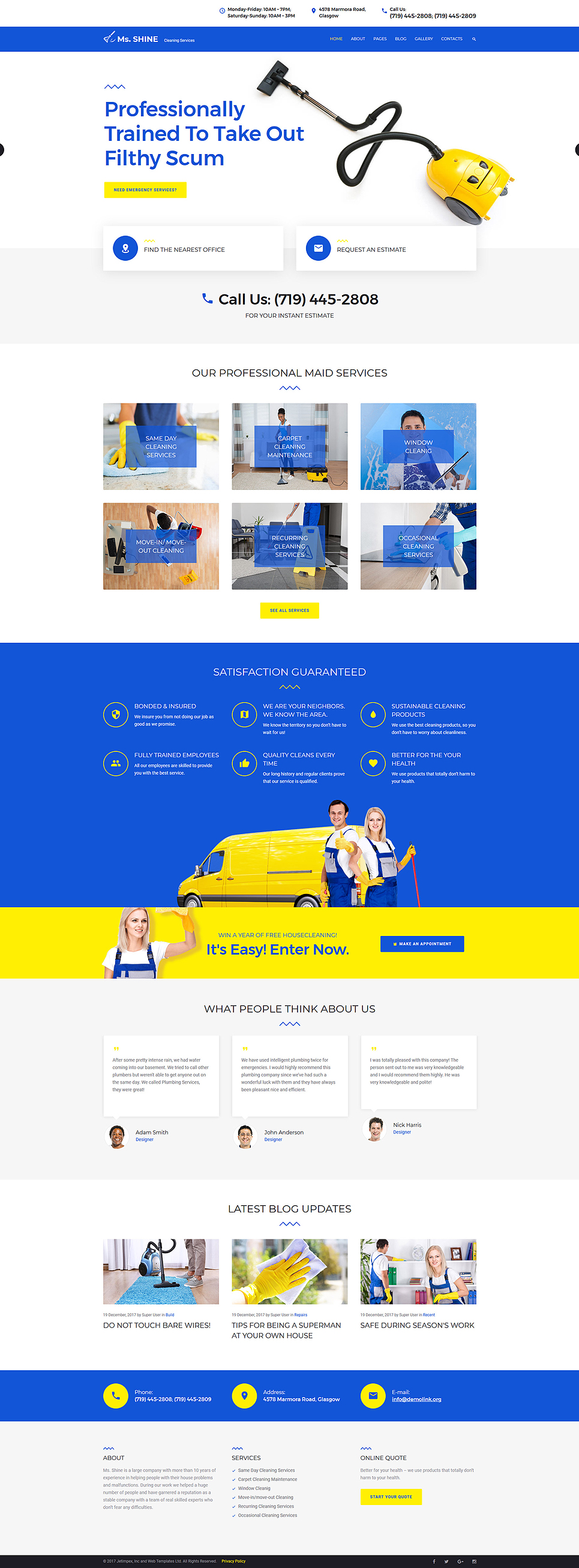 Ms. Shine - хорошо подходит для сайтов на тему Клининговая компания. Joomla шаблон сайта - Cleaning Services Responsive Joomla Template.