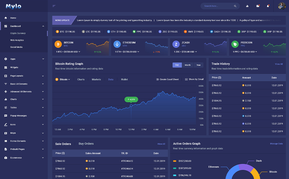 Панель управления шаблон для панели управления сайтом - Mylo - Multipurpose Bootstrap 4 Admin Template, отлично подойдет для сайтов в категории Бухгалтерские услуги.