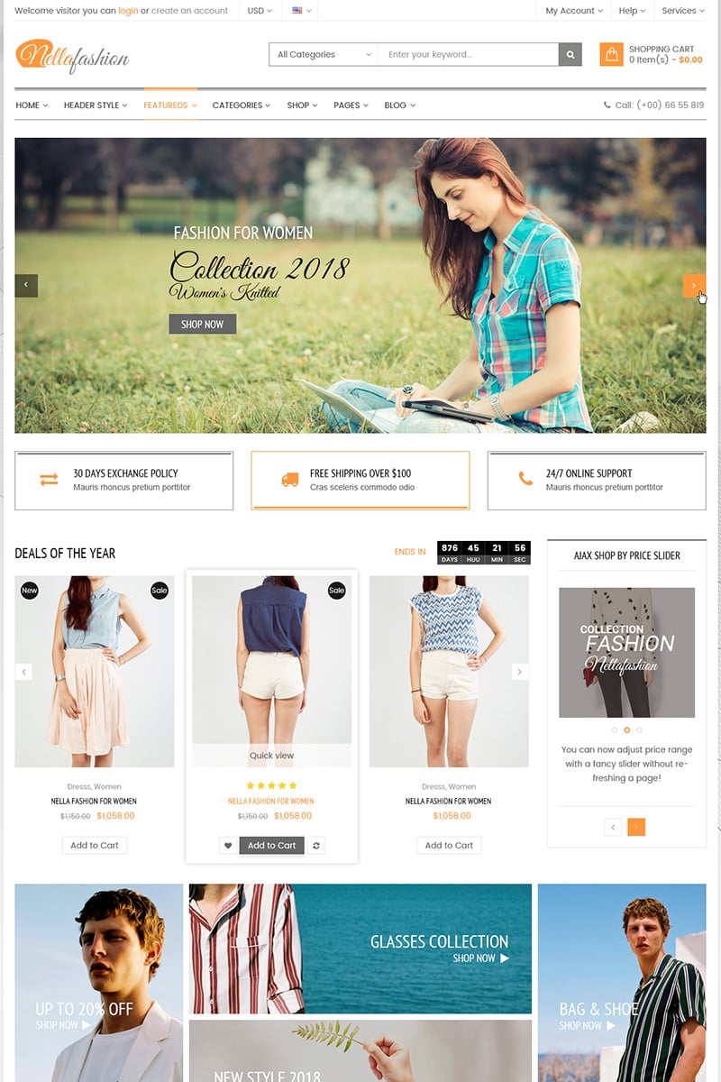 nella fashion shop woocommerce тема