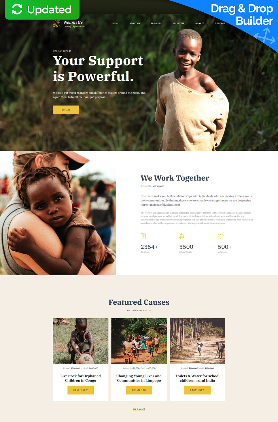 Moto CMS 3 современный шаблон - Neumette - Ngo Premium Moto CMS 3 Template, подойдет для сайтов в области Детская благотворительность.