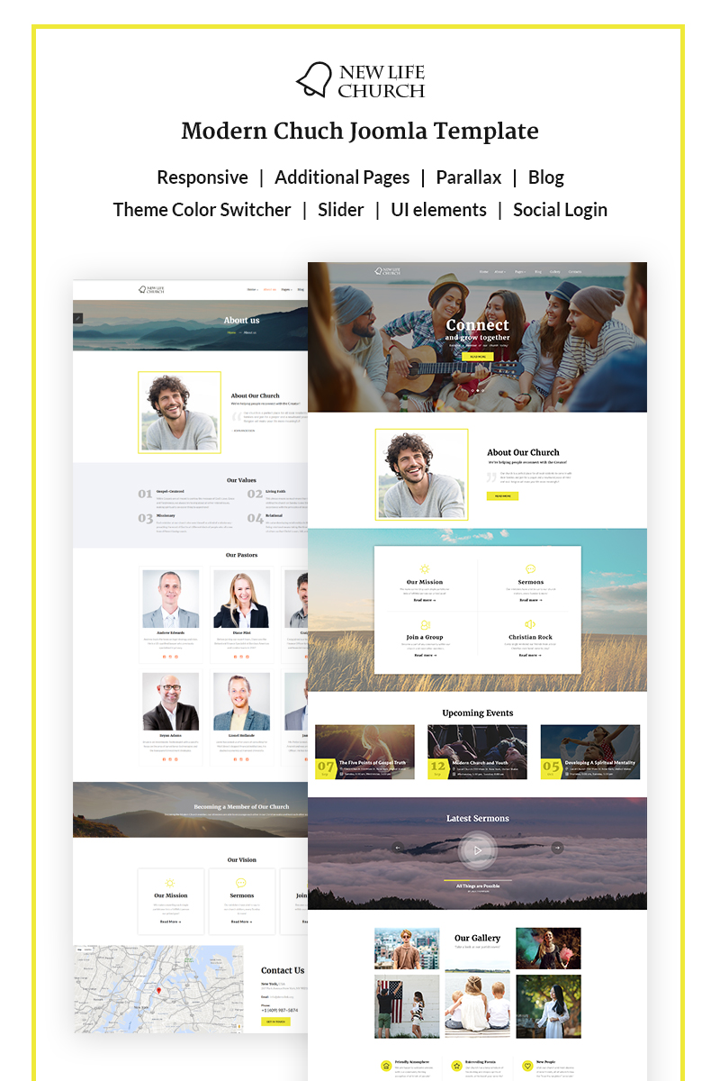 Joomla шаблон 2021 года - Religious - New Life Church Joomla Template, превосходно подходит для сайтов в категории Религия.