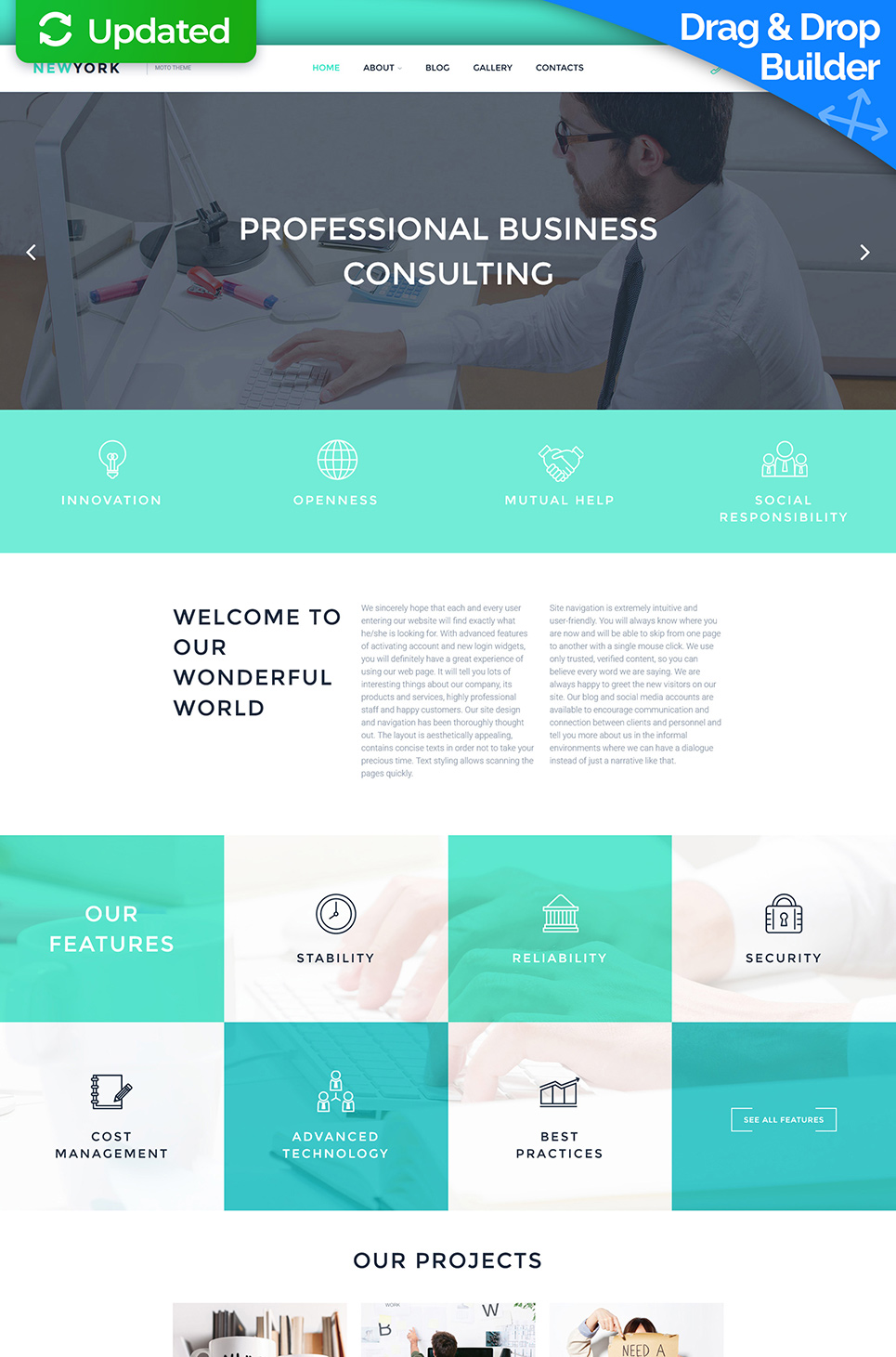 Moto CMS 3 приятный шаблон - New York - Consulting Company Moto CMS 3 Template, отлично подойдет для сайтов в области Консалтинг.