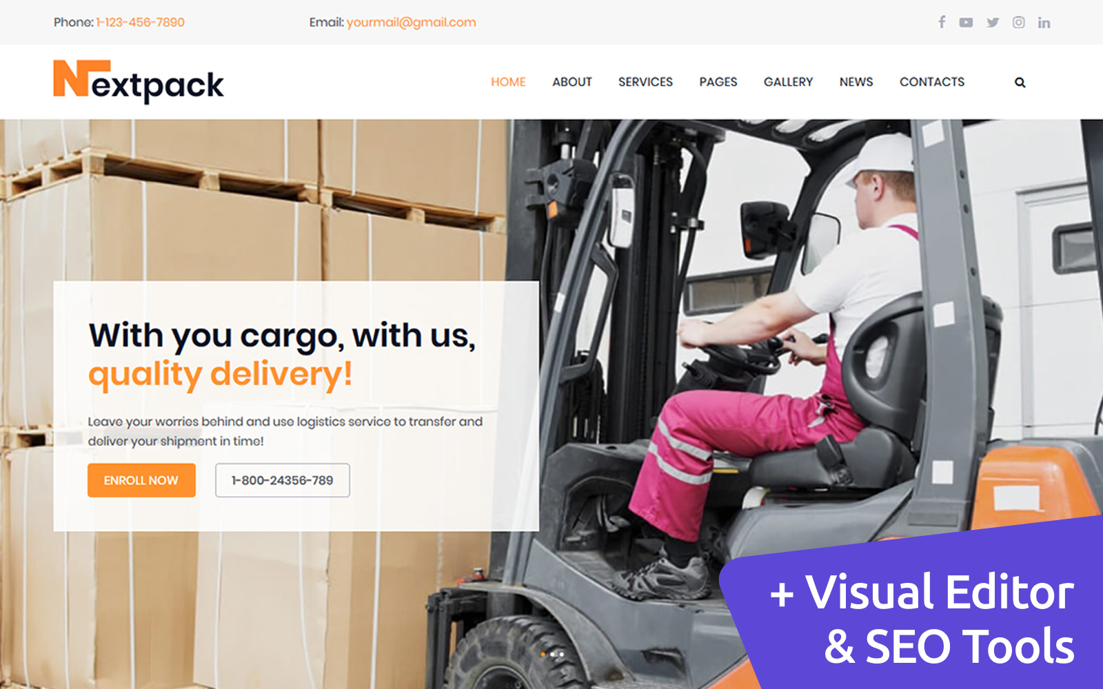 NextPack - специально для сайтов в категории Грузоперевозка. Moto CMS 3 эффектный шаблон - Delivery Services Moto CMS 3 Template.
