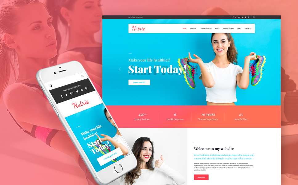 WordPress шаблон - Nutrie - Health Coach WordPress Theme, подходит для сайтов на тему Личный консультант.