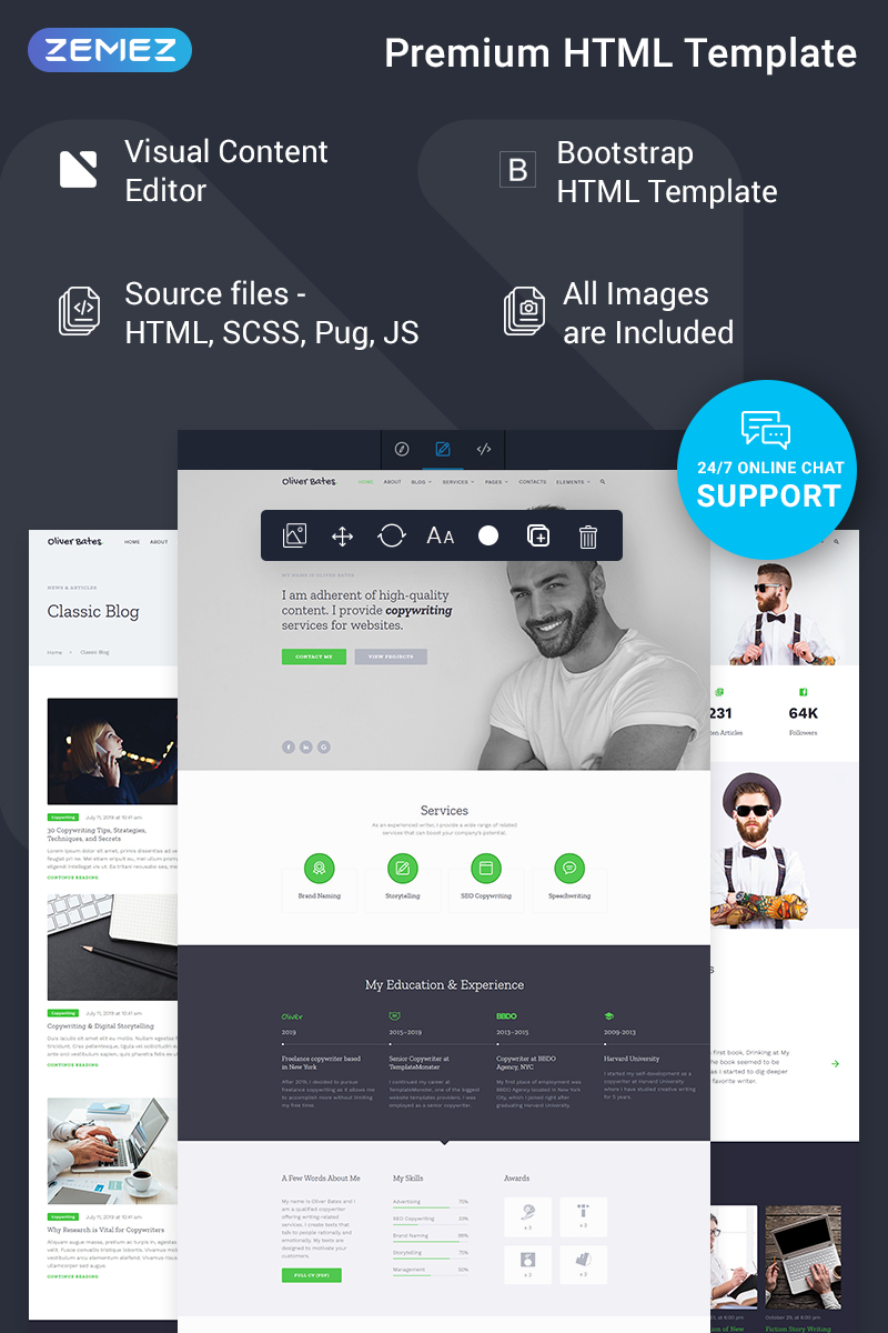 Oliver Bates - подойдет для сайтов на тему Писатель/автор. HTML5 отличный шаблон - Use HTML5 Website Template.