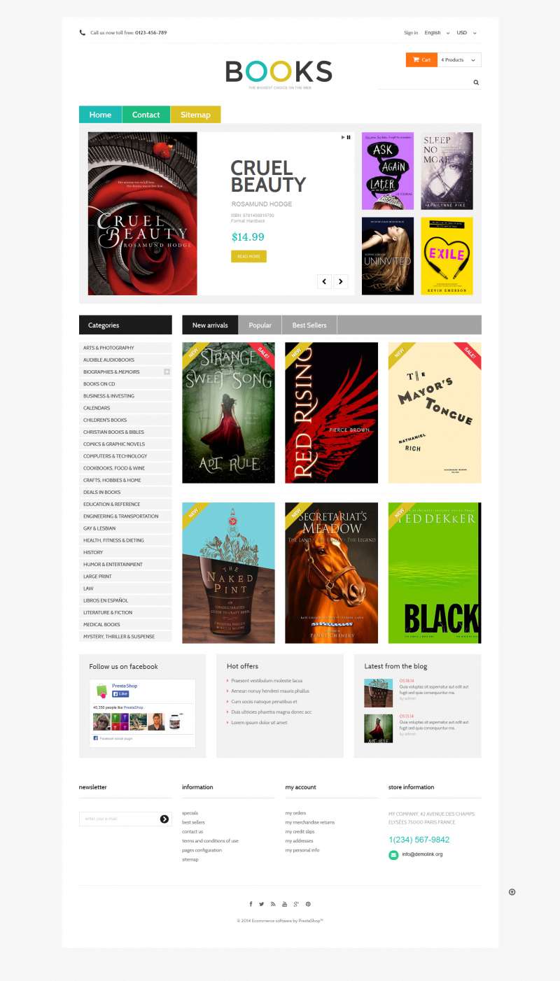 Books - отлично подойдет для сайтов в области Книги. PrestaShop шаблон для интернет-магазина - Online Bookstall PrestaShop Theme.
