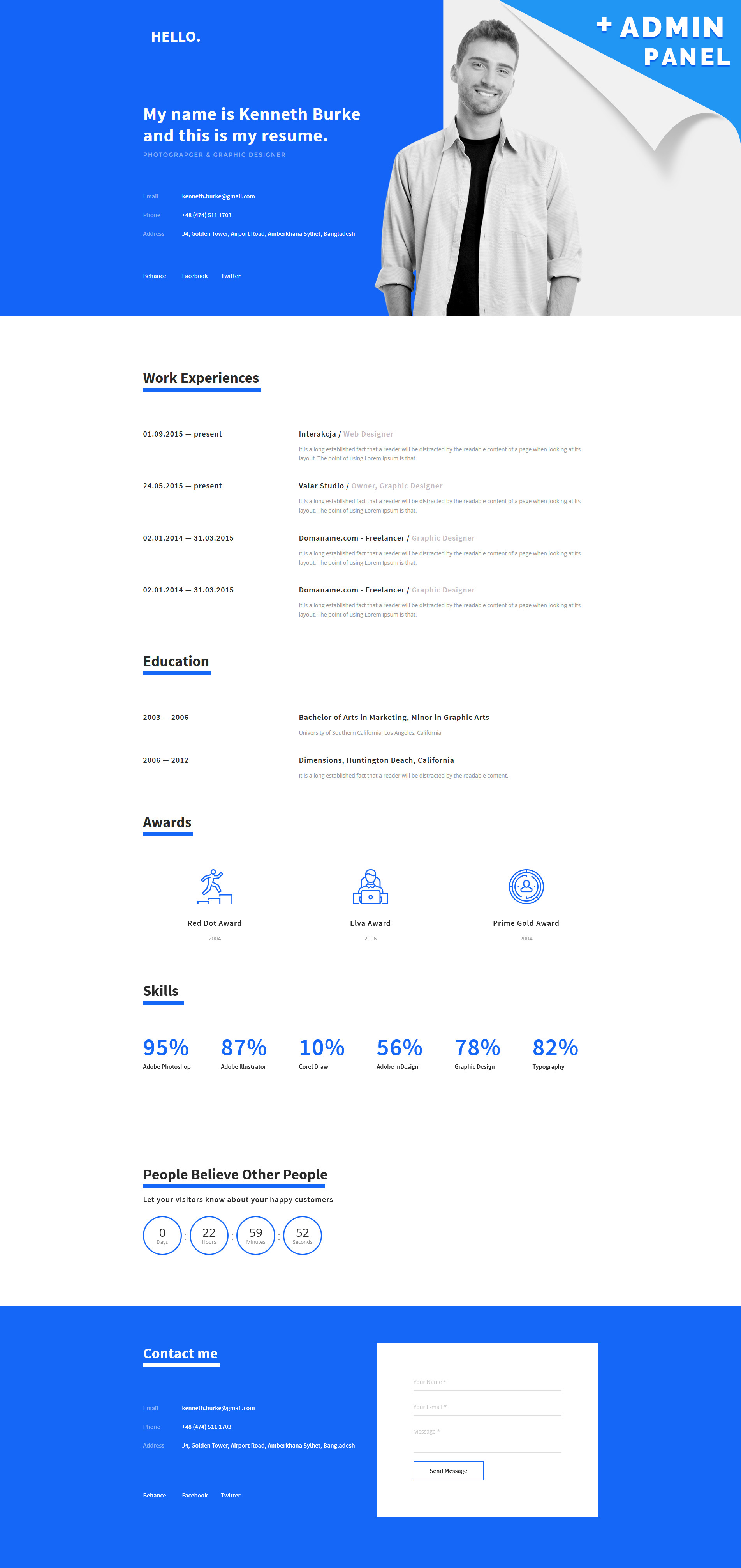 Лендинг шаблон одностраничника - Personal Page - Online CV MotoCMS 3 Landing Builder Landing Page Template, отлично подходит для сайтов в категории Персональная страница.