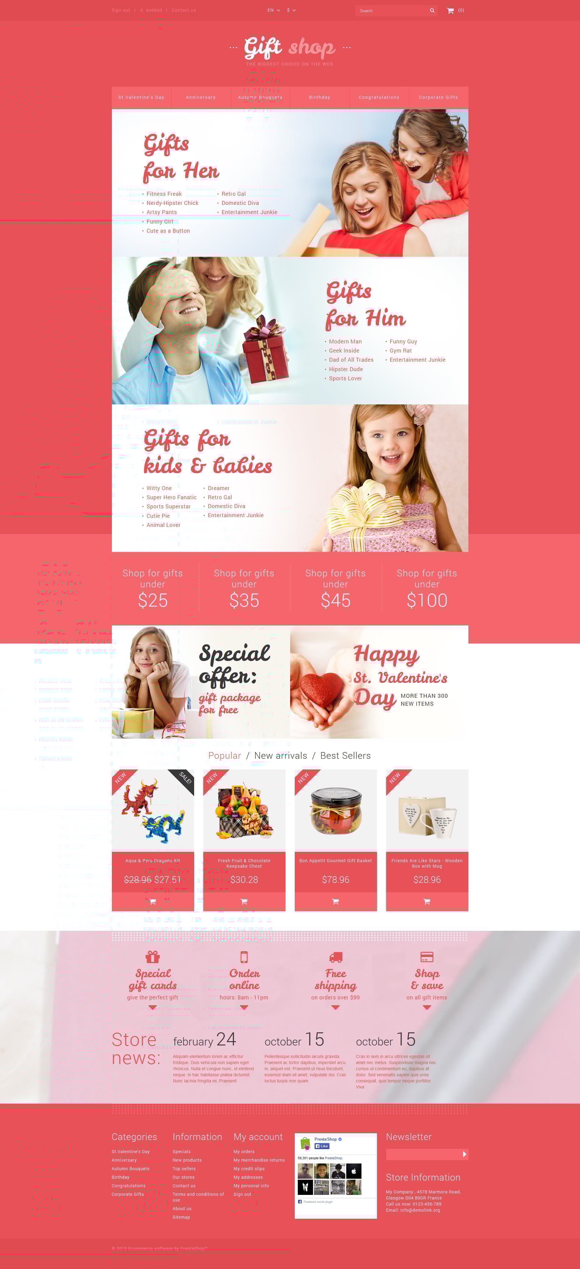 Интернет-магазин подарков prestashop тема - Gifts Store - PrestaShop шаблон интернет-магазина