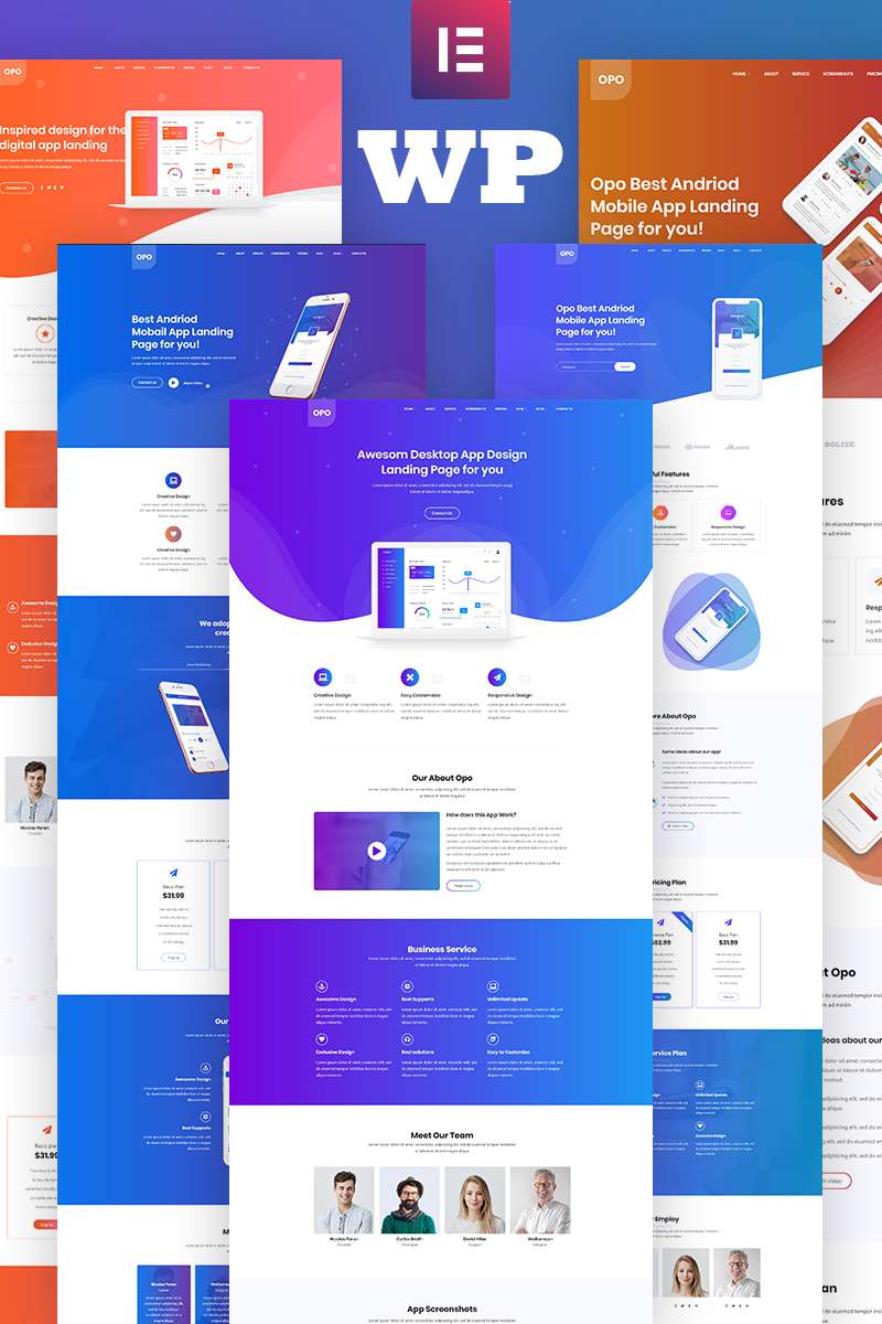 WordPress шаблон сайта - Opo - Creative App Responsive WordPress Theme, отлично подойдет для сайтов на тему Компания по разработке ПО.