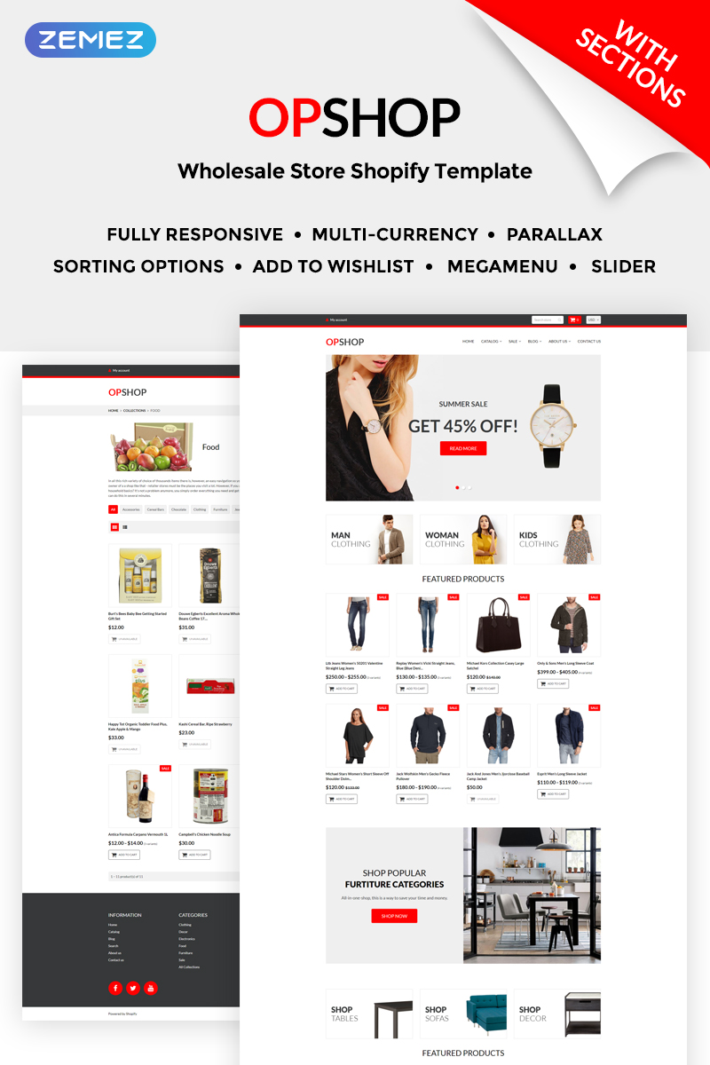 Shopify шаблон для сайта интернет-магазина - OpShop - Wholesale Store Shopify Theme, специально для сайтов Оптовый магазин.