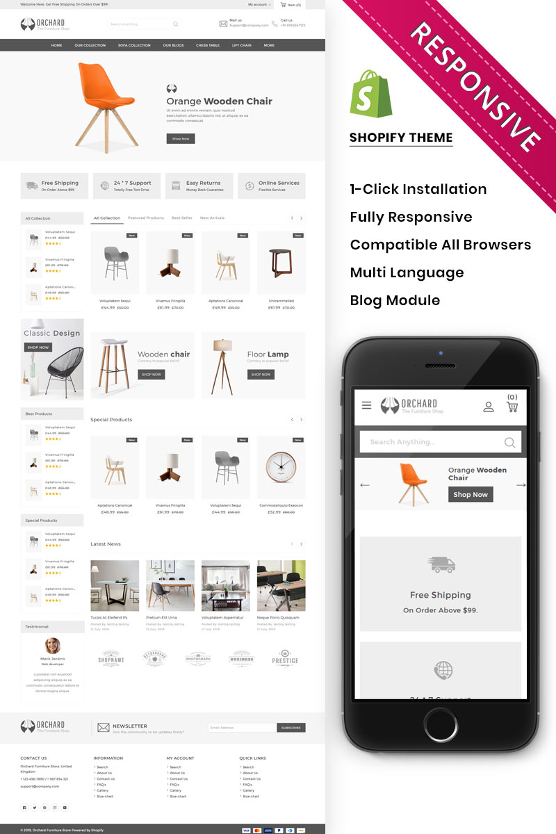 Скриншот - Мебельный магазин отзывчивая тема shopify - Orchard - Shopify шаблон для сайта интернет-магазина