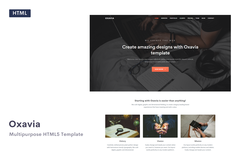 Лендинг шаблон одностраничника - Oxavia - Responsive HTML5 Landing Page Template, идеально подходит для сайтов на тему Бизнес и услуги.