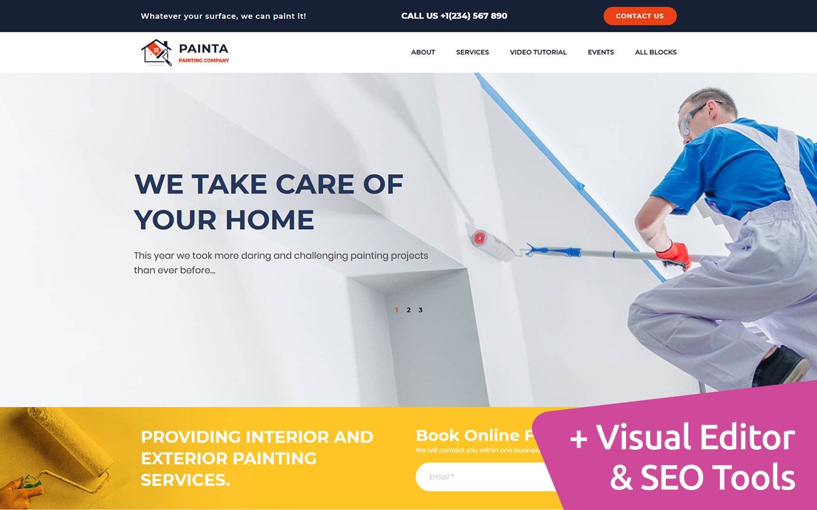 Painta - подходит для сайтов в сфере Малярная компания. Лендинг шаблон для одностраничного сайта - Painting Company MotoCMS Landing Page Template.