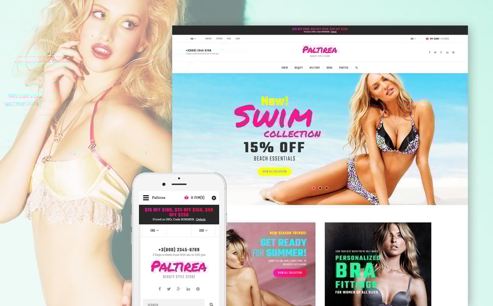 Paltirea - хорошо подходит для сайтов в сфере Магазин белья. OpenCart интернет-магазин для сайта - Lingerie Responsive OpenCart Template.