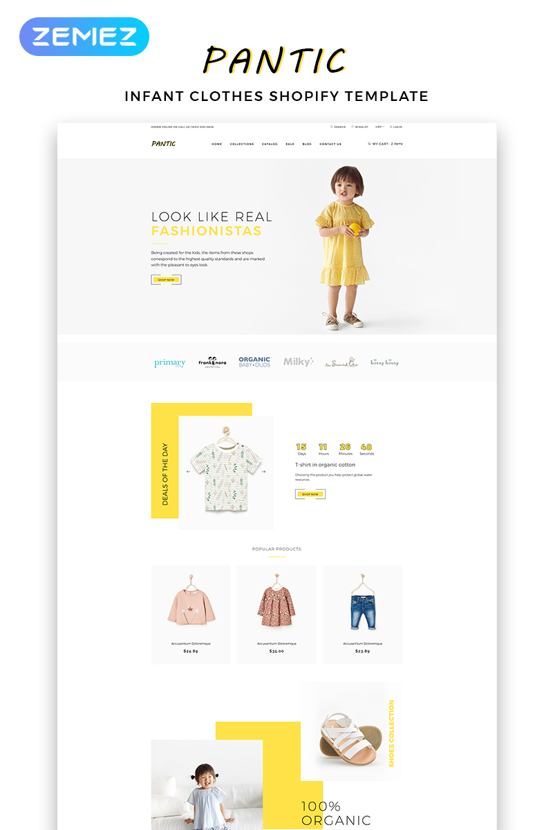 Pantic - превосходно подходит для сайтов в категории Детская мода. Shopify интернет-магазин для сайта - Kids Fashion Clean Shopify Theme.