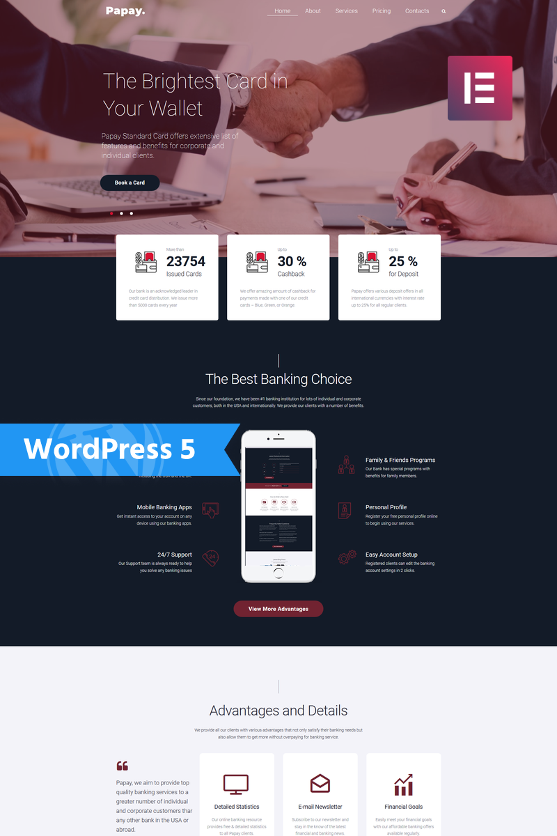 Papay - подходит для сайтов на тему Банк. WordPress минималистичный шаблон - Concept Classic WordPress Elementor Theme.
