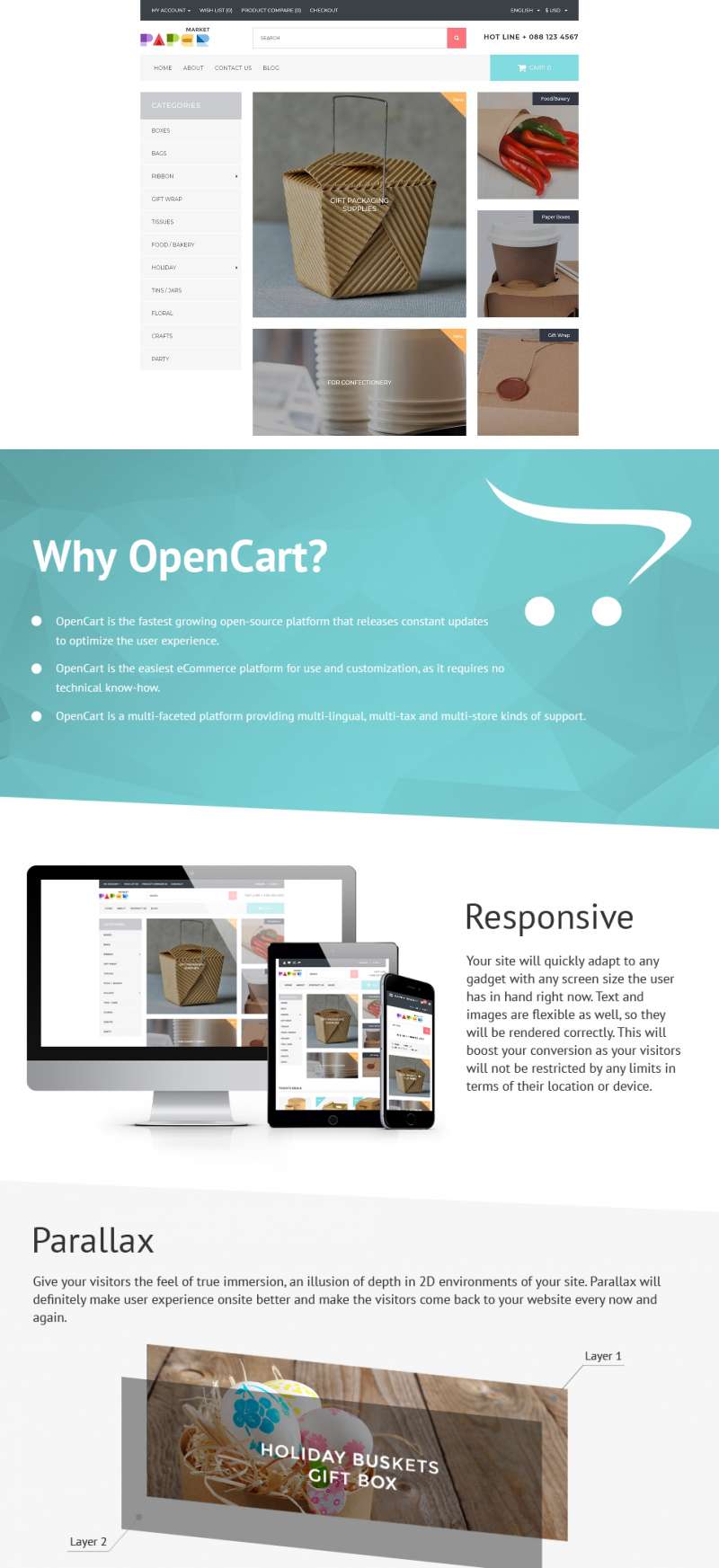 OpenCart шаблон для интернет-магазина - Paper Market - Packaging Responsive OpenCart Template, хорошо подходит для сайтов Упаковочные материалы.