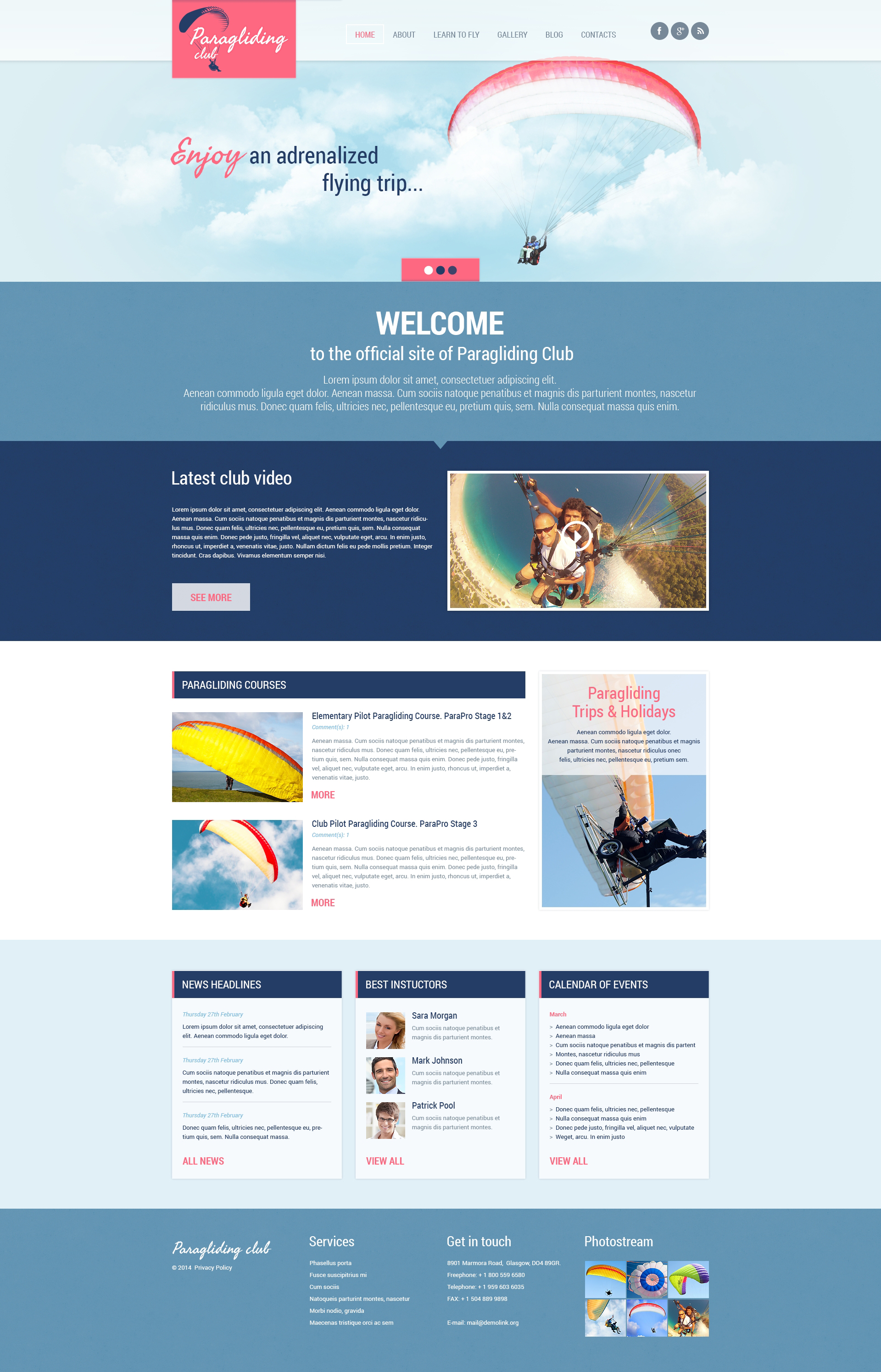 Paragliding - отлично подойдет для сайтов на тему Парапланеризм. WordPress профессиональный шаблон - Paragliding Responsive WordPress Theme.