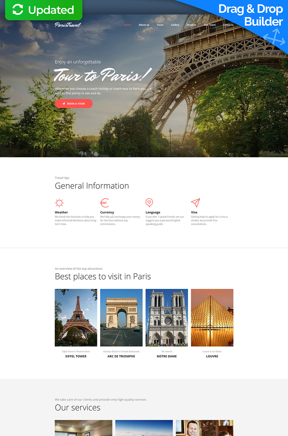 Travel Agency - подойдет для сайтов в области Агентство путешествий. Moto CMS 3 популярный шаблон - Paris Travel Agency Premium Moto CMS 3 Template.