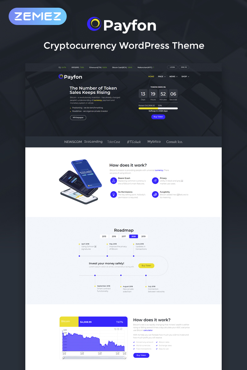 WordPress отличный шаблон - Payfone - ICO WordPress Elementor Theme, идеально подходит для сайтов в области Финансы.