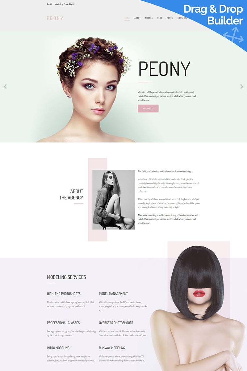 Moto CMS 3 адаптивный шаблон - Peony - Fashion Model Moto CMS 3 Template, подойдет для сайтов в области Модельное агентство.