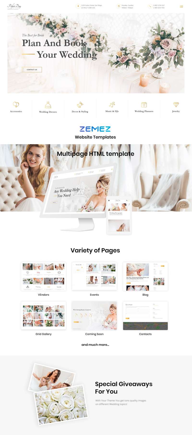 HTML5 шаблон 2021 года - Perfect Day - Wedding Planning Multipage HTML Website Template, хорошо подойдет для сайтов Свадебный салон.