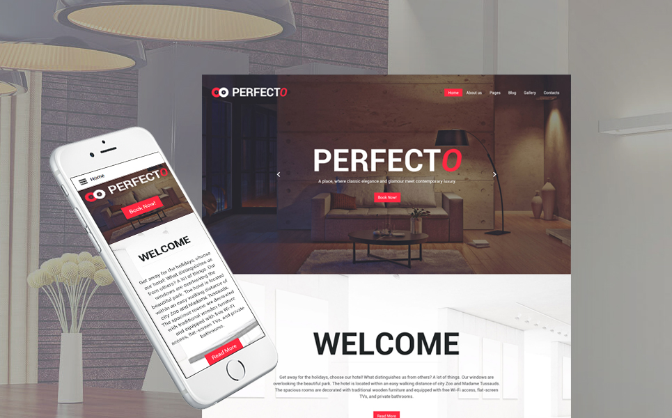 Perfecto - подходит для сайтов Отели. Joomla современный шаблон - Luxury Hotel Responsive Joomla Template.
