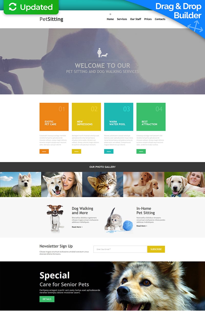 Pet Sitting - отлично подойдет для сайтов в категории Домашние животные. Moto CMS 3 современный шаблон - Pet Sitting Moto CMS 3 Template.