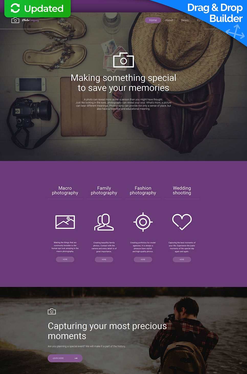 Фотогалерея шаблон фотогалереи для сайта - PhotoCompany - Photographer Portfolio Gallery Template, подходит для сайтов Портфолио фотографа.