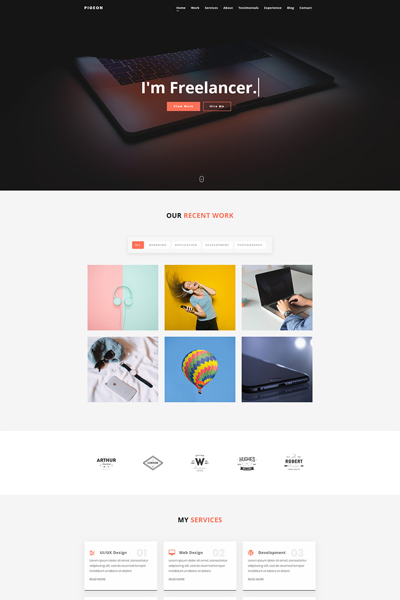 Скриншот - Шаблон целевой страницы личного портфолио - Pigeon - Лендинг шаблон посадочной страницы