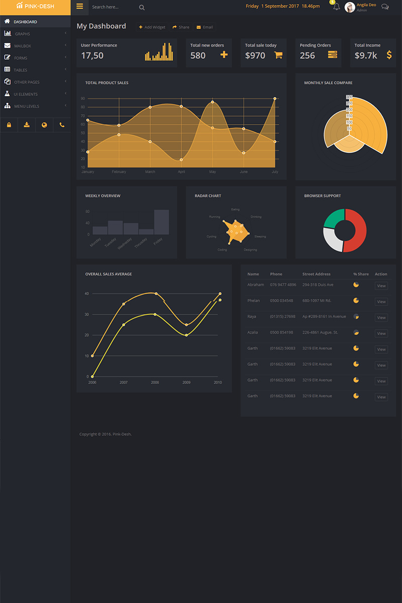 Светлый и темный админ-шаблон - Pink-Desh - Панель управления шаблон панели администратора сайта