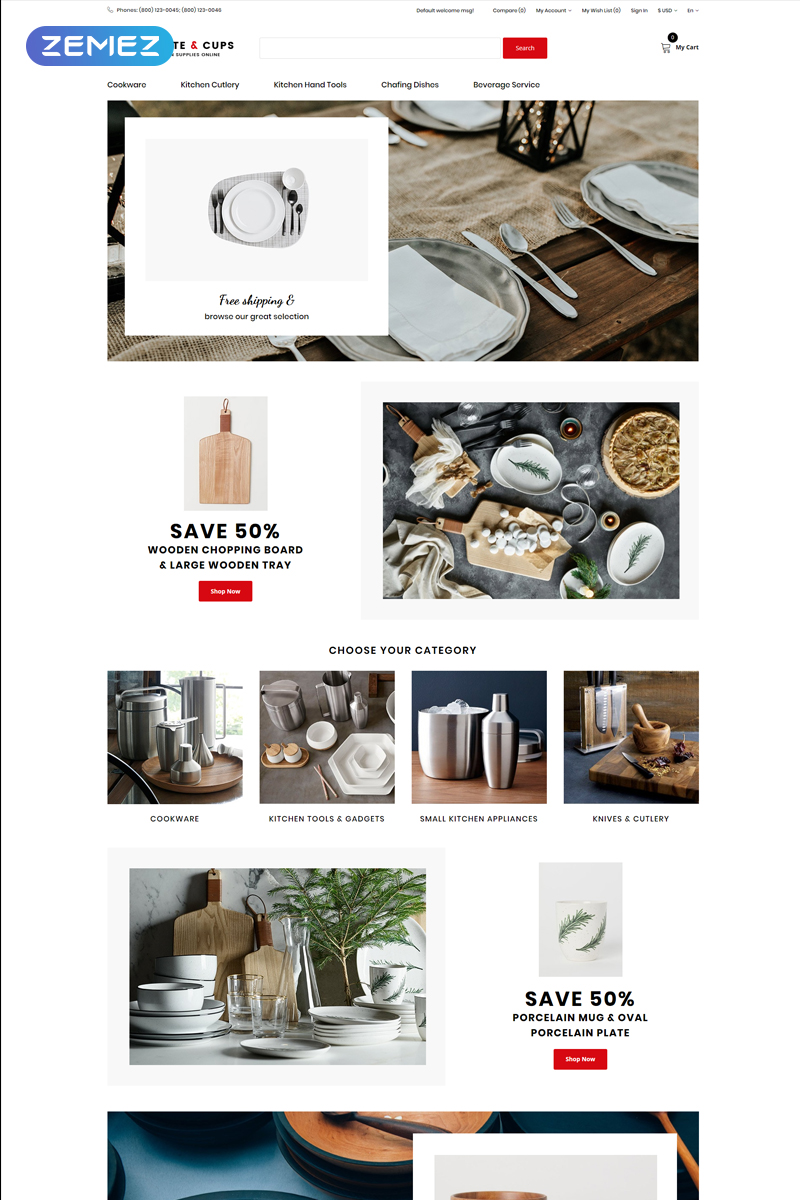 OpenCart шаблон для сайта интернет-магазина - Plate & Cups - Food and Restaurant Simple Clean Bootstrap OpenCart Template, превосходно подойдет для сайтов в сфере Напитки и еда.
