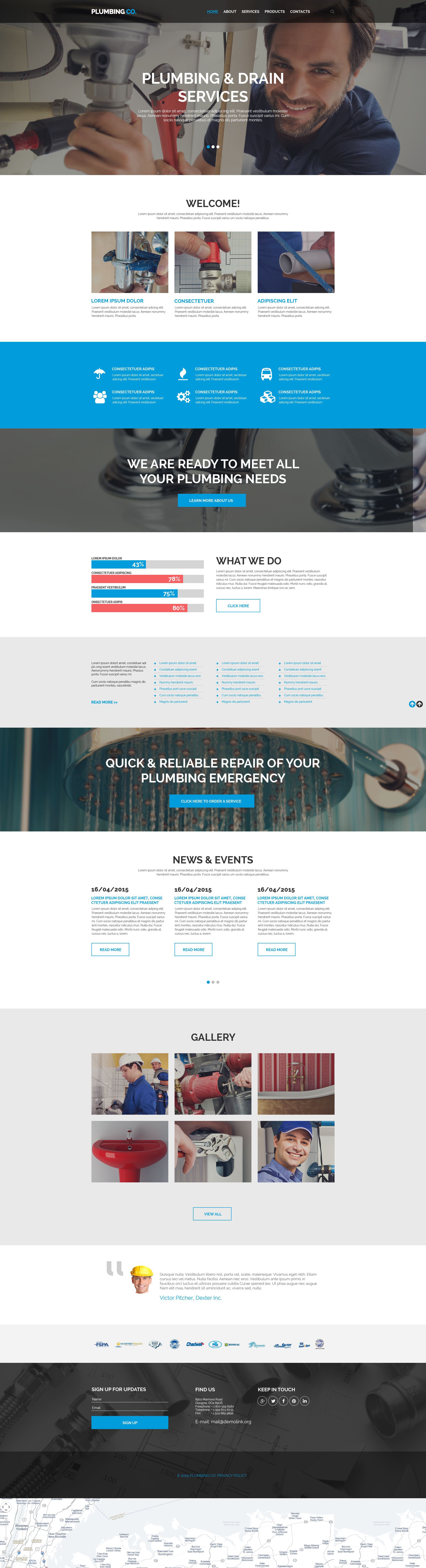 HTML5 мультишаблон для сайта - Plumbing - Plumbing Responsive Website Template, идеально подходит для сайтов в сфере Сантехника.